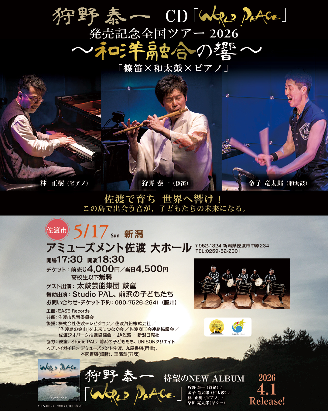 CD『WORLD PEACE』発売記念全国ツアー 2026新潟県 佐渡市 アミューズメント佐渡 大ホール