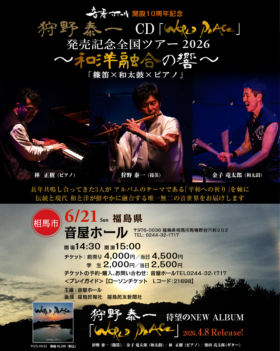 CD『WORLD PEACE』発売記念全国ツアー 2026福島県 相馬市「音屋ホール 開設10周年記念」
